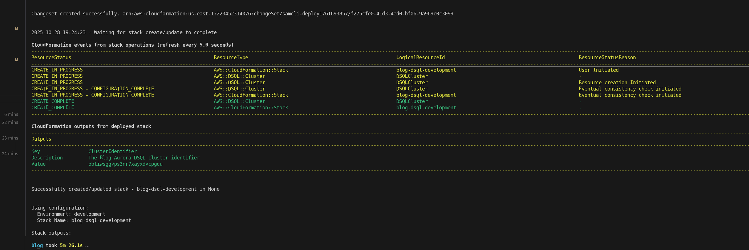 I'm building AI chat features for my blog. I wanted Postgres because it's my go-to database. I decided to try the AWS stack since we use it at work.